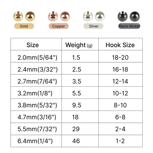 MUUNN 200PCS Brass Bead,2.0mm-6.4mm Brass Nymphs Fishing Bead Trout Weighted Round Metal Fly Fishing Tackel
