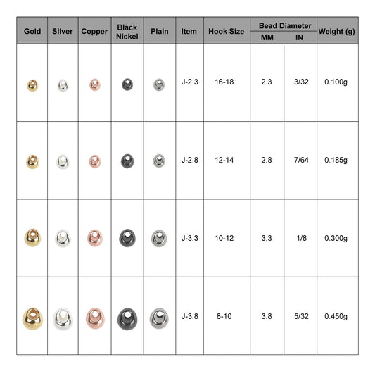 MUUNN 50PCS 2.3~3.8mm Tungsten Jig Off Beads,Tying Nymph Jig Head,Offset Beads,Fly Tying Material,0.1g~0.45g Fly Tying Material