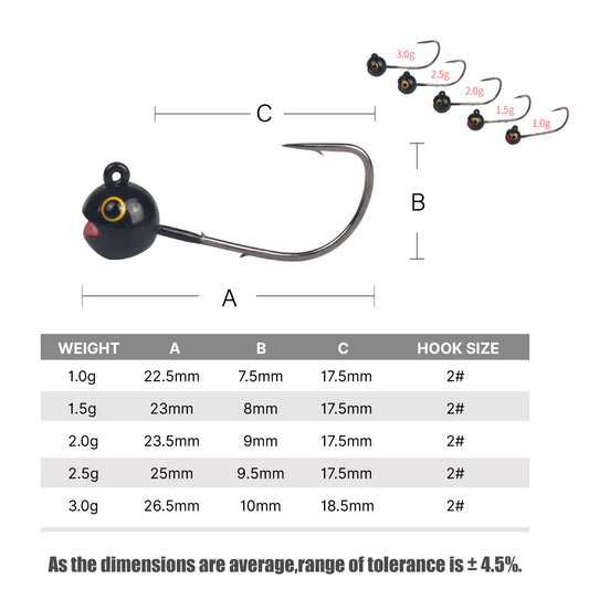 MUUNN Tungsten Round Jig Head Hook , 1/1.5/2/2.5/3g Slow Jigging Bass Crappie Trout Bluegill Fishing Shaky Jig Rig Rockfish Soft Lure Barbed AJING Hooks