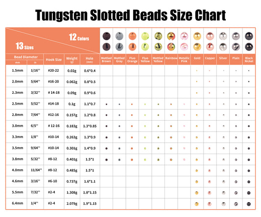 MUUNN Tungsten Fly Tying Slotted Bead Kit,120/240pcs Colorful 2.5-3.8mm,Trout Perch Fishing Hooks Tying Accessories Rainbow Orange