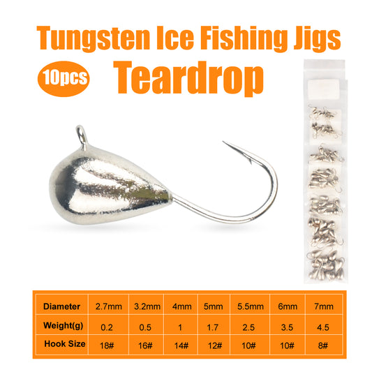 MUUNN 10PCS Tear Drop Tungsten Ice Jig,Fishing Winter Hook 2.7mm/3.2mm/4mm/5mm/5.5mm,Ice Jig With An Eyelet,Plain