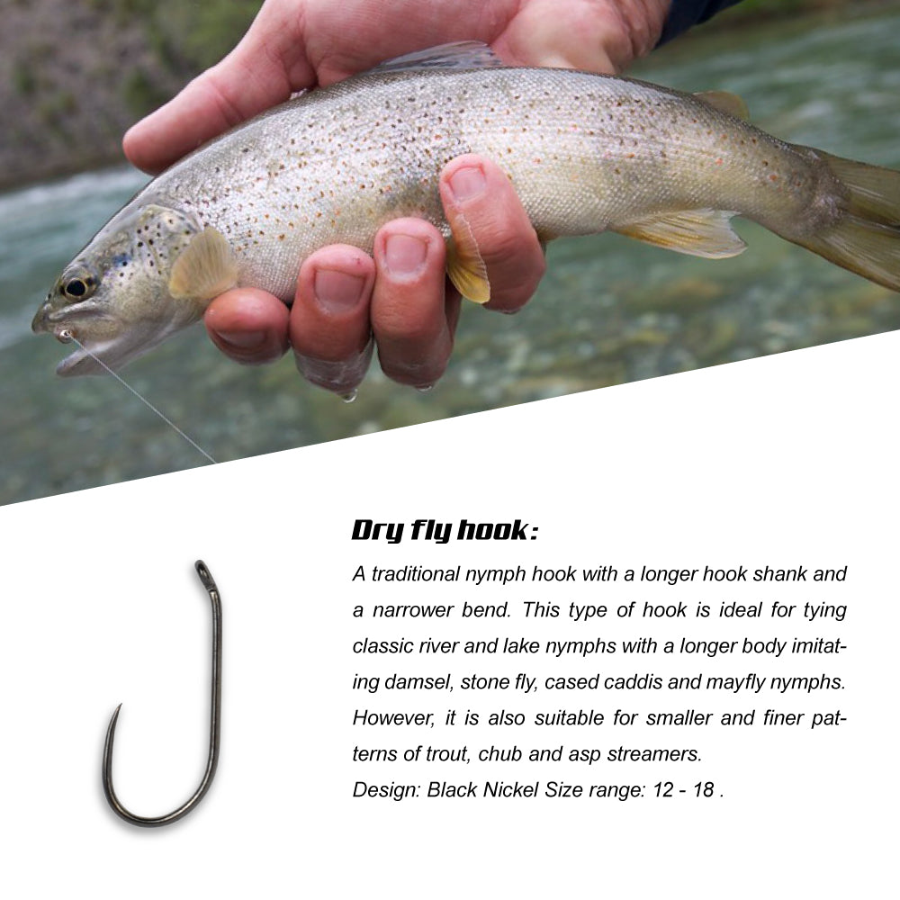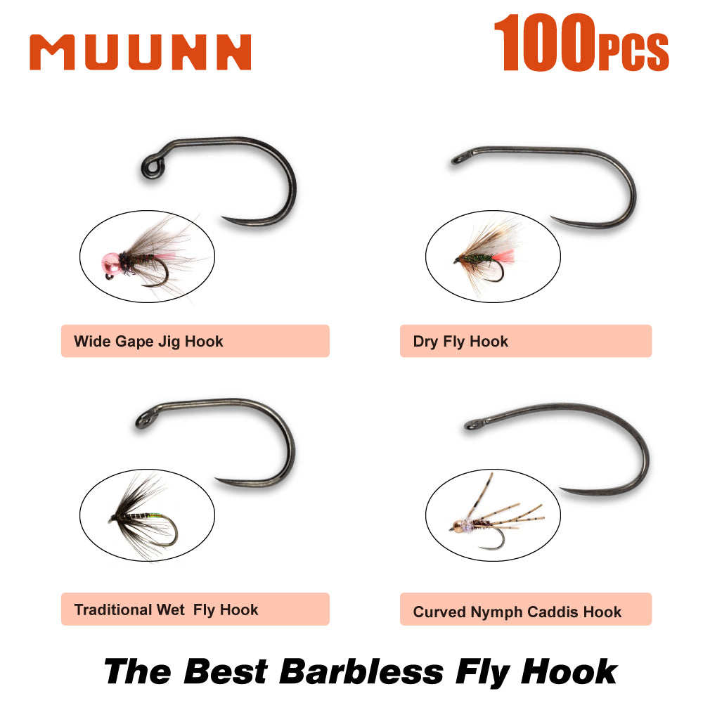 MUUNN 100PCS Fly Tying Hooks, #10#12#14#16#18,Fishing Dry Nymph Shirmp Wet Caddis,Barbless Hook ,Wide Gape Jig,Trout Hooks