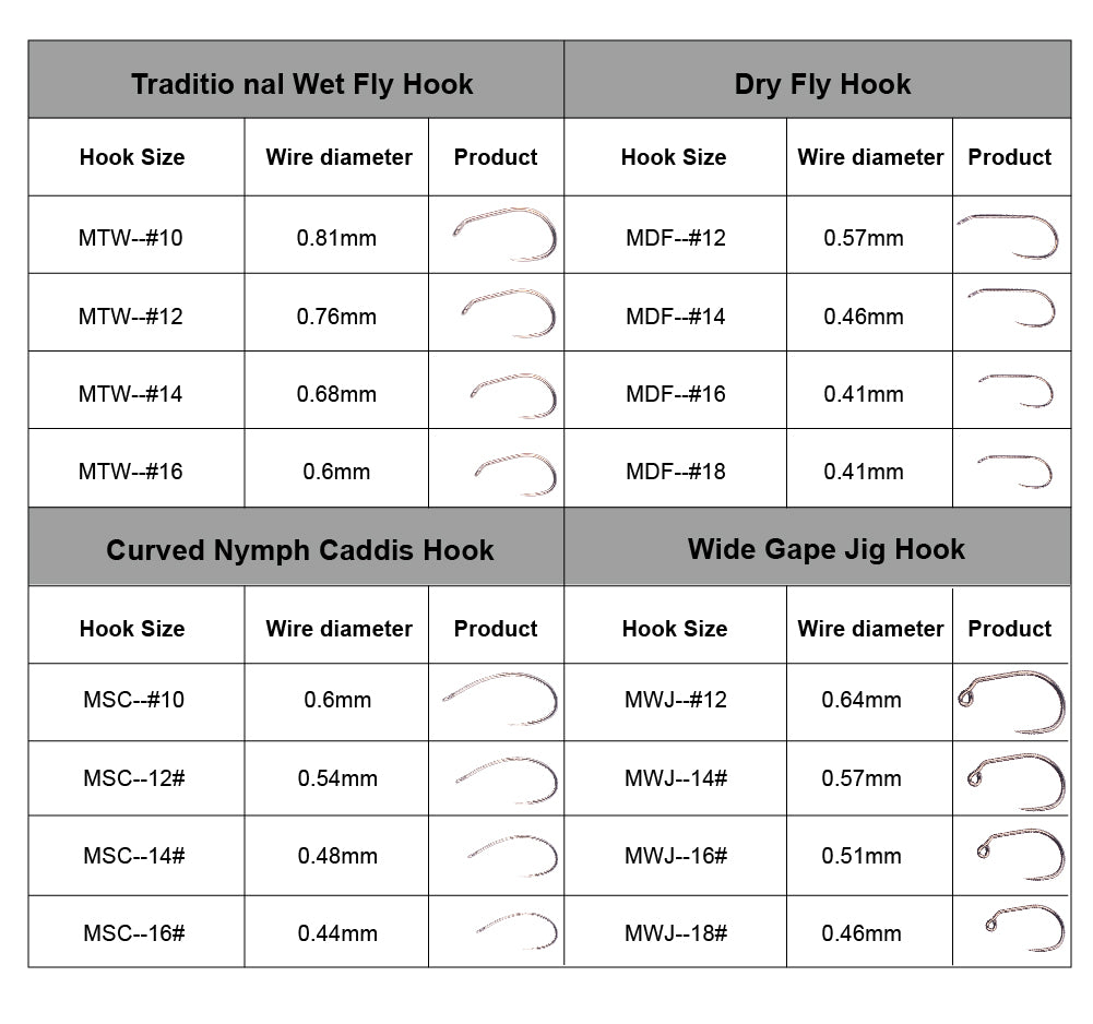 MUUNN produces very high quality fly hooks for all fly fishing techniques. Fly Tying Hooks are the most basic fly tying material for making an effective fishing fly. When choosing the right and quality fly hook, we must consider several very important aspects, which include mainly the type of hook and its size, sharpness of the tip, the presence or absence of a barb, the strength of the wire, which is directly related to its total strength and weight it also includes material of wire of the hook, the color and, for example, its manufacturer, which is often a very decisive factor, which is mainly influenced by the overall quality, fame and, of course, the price of the hook. Also very important is the "mission" or primary purpose of using the hook.
