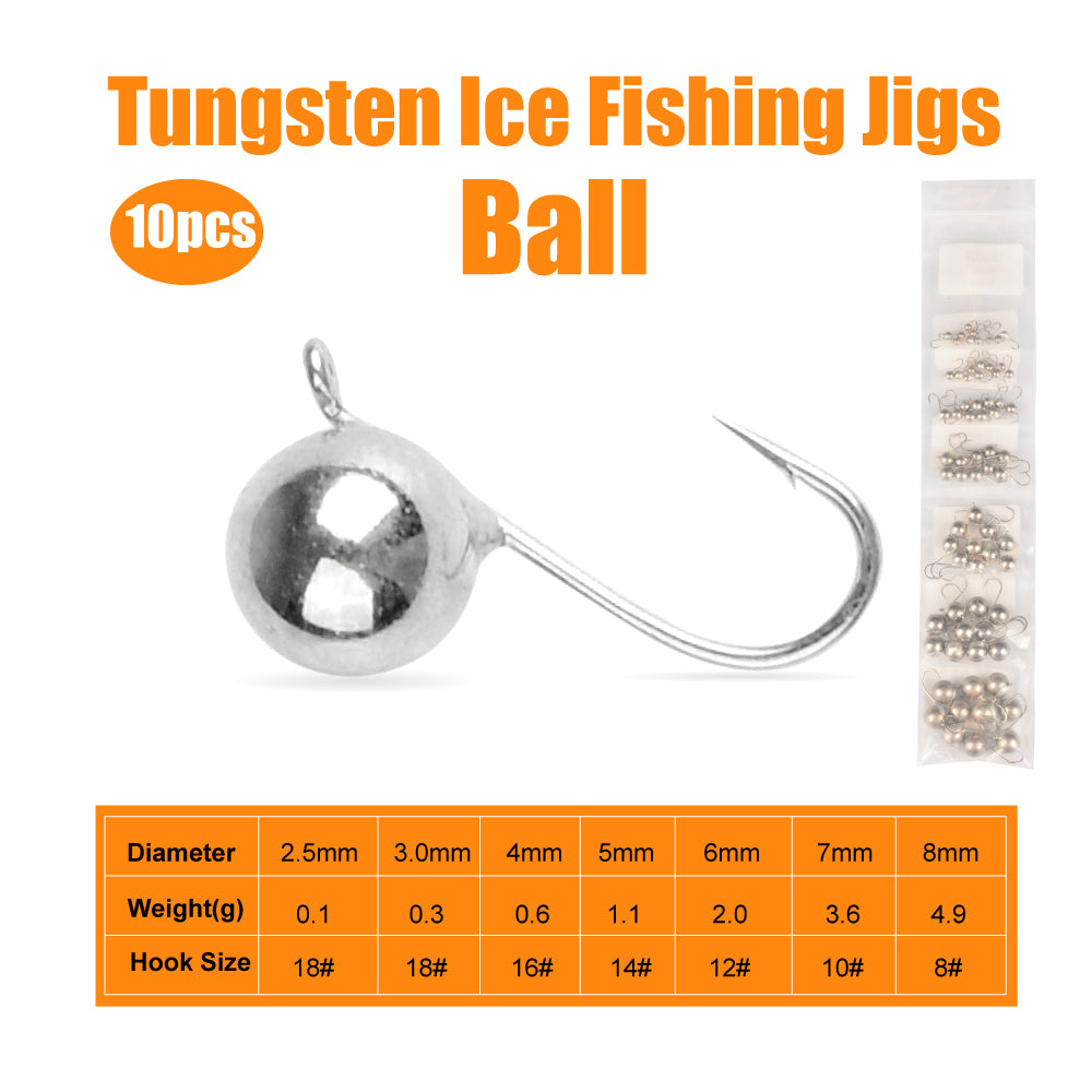 MUUNN 10PCS Tungsten Ball Ice Jig With An Eyelet, Fishing Winter Hook 2.5mm/3mm/4mm/5mm/6mm/7mm/8mm,Pike Carp Trout Lure