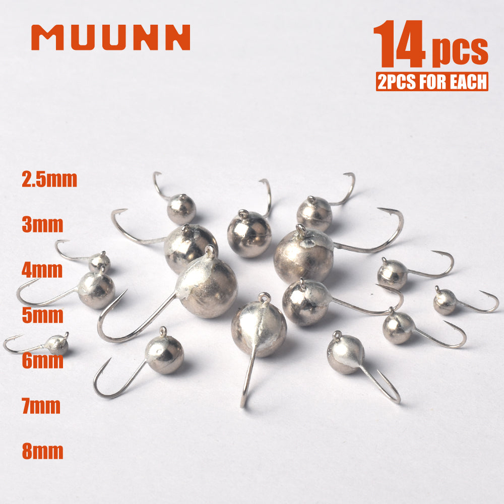 MUUNN 14PCS Tungsten Ball Ice Jig With An Eyelet, Ice Fishing Winter Hook 2.5mm/3mm/4mm/5mm/6mm/7mm/8mm,Lure for Winter Fishing