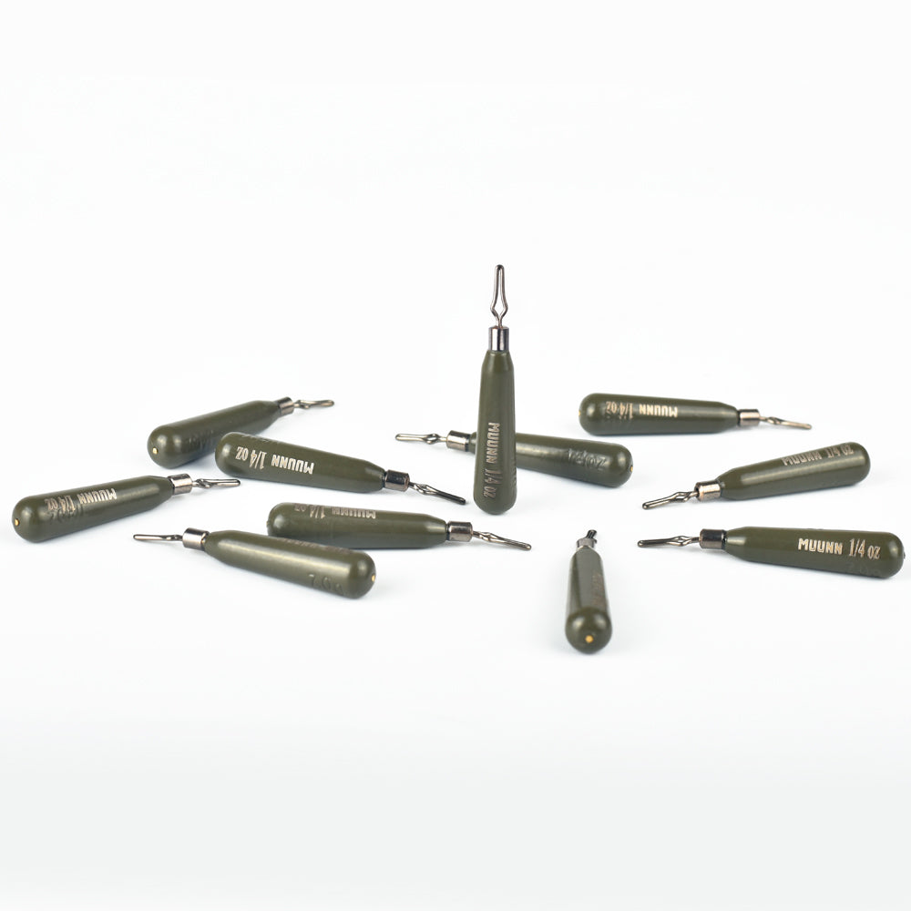 If you think fish don't see that shiny hunk of metal you're dragging along the bottom with a traditional drop shot weight, think again. Introducing MUUNN tungsten sinker, a green pumpkin drop shot weight that blends into the bottom and helps you catch more fish! Like all of our weights, it is powder coated with high quality, chip resistant paint. Our Heavy Series Invisashot Drop Shot Weights are a custom designed shape that allows you to feel absolutely everything that it comes into contact with. WOO!