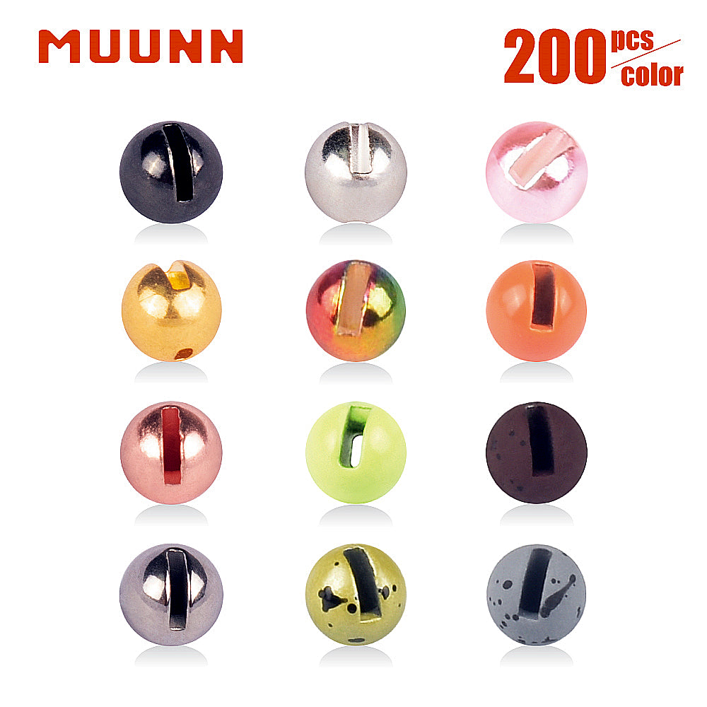 MUUNN 200pcs Tungsten Slotted Beads 2.5mm-3.8mm Trout Perch Fishing Fly Tying Fishing Accessories DIY Material