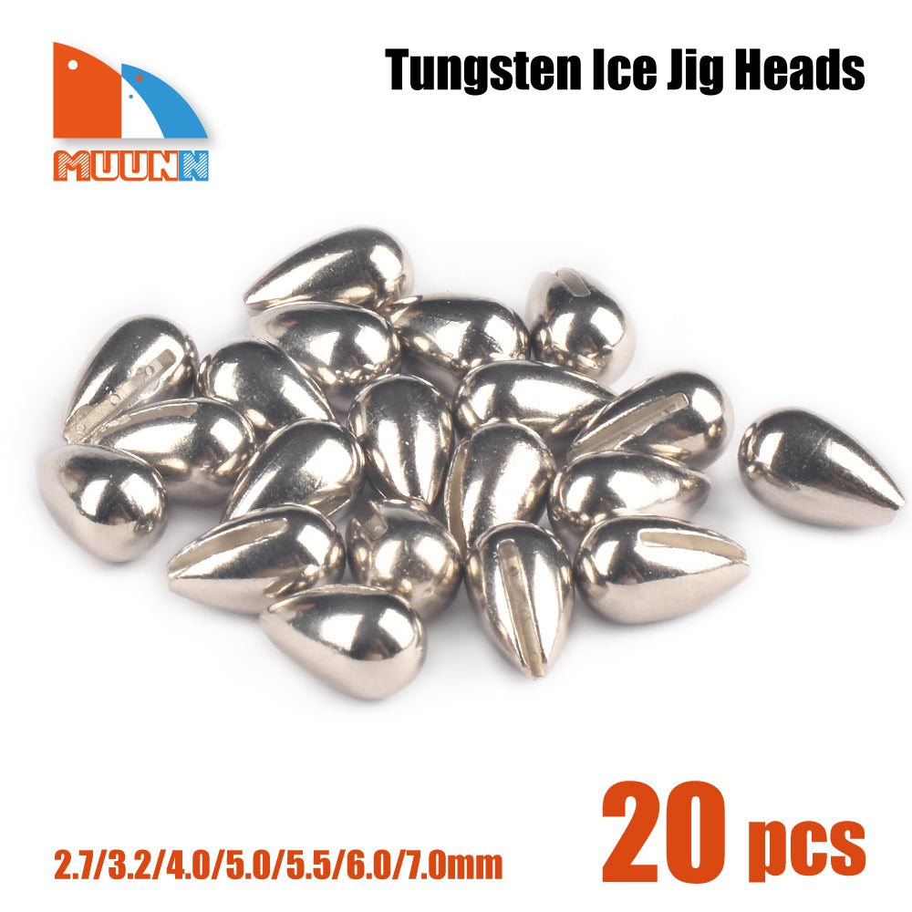 MUUNN 20PCS Tear Drop Tungsten Ice Jig Head,Without Hook DIY Winter Fishing Welding Material, 2.7/3.2/4/5/5.5/6/7mm