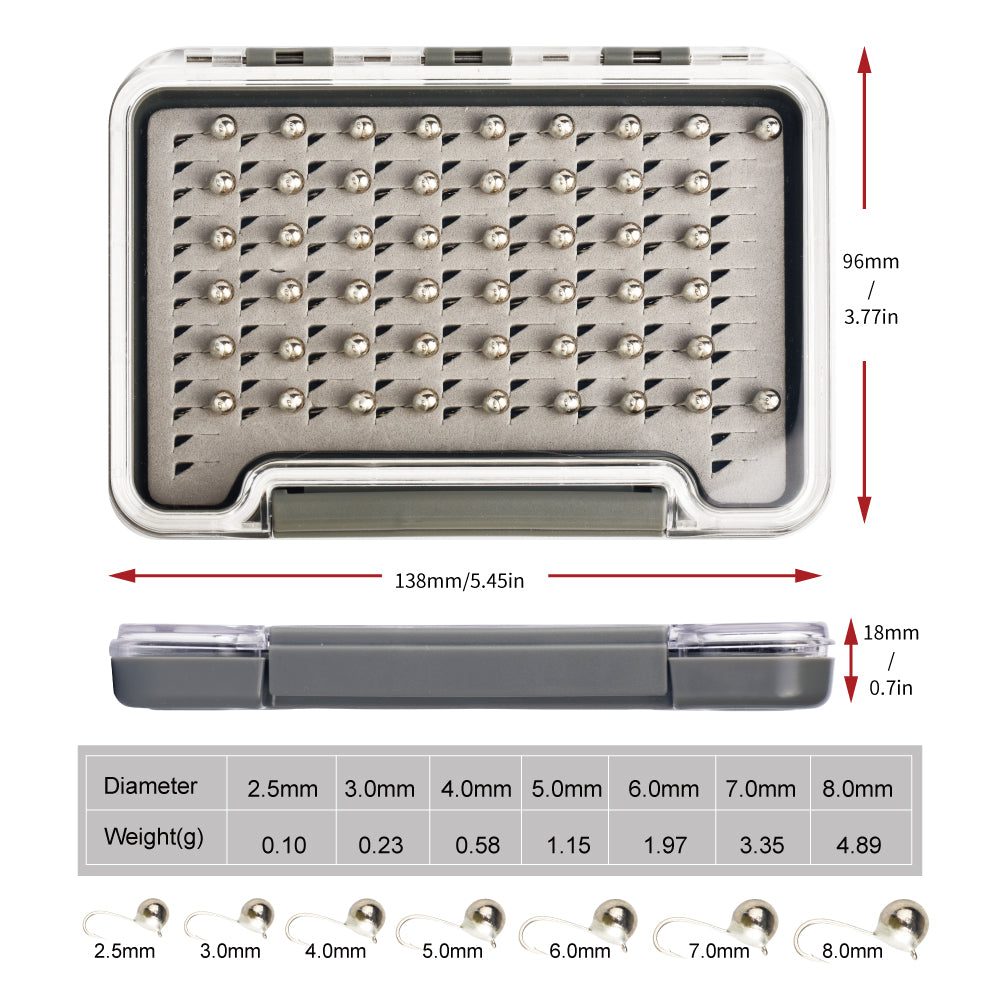MUUNN 25/50pcs Tungsten Ball Ice Jig Tungsten Ice Jig Head Fishing Set,Boxed 50 lot 2.5mm 3mm 4mm 5mm 6mm 7mm 7mm 8mm Hook