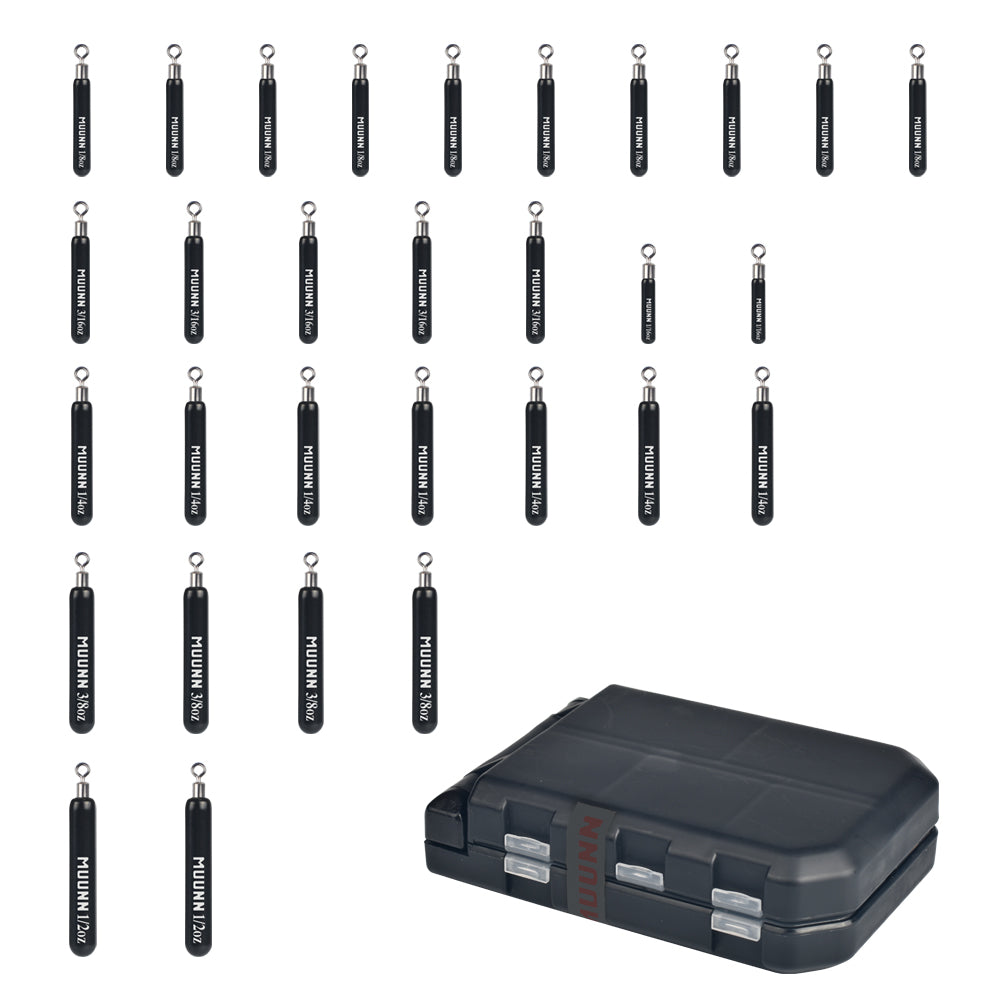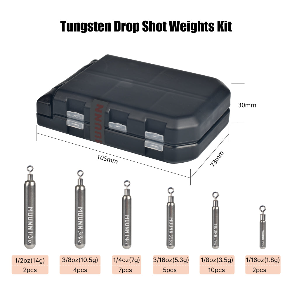 MUUNN 30PCS Tungsten Sinker Combo,Skinny Drop Shot Weight Set Jika Rig Sinkers 1/16OZ-1OZ,Bass Crappie Panfish Lure Accessories