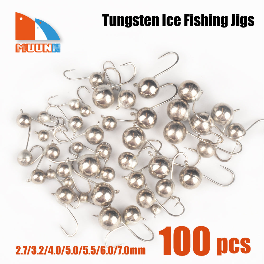 MUUNN Tungsten Ball Ice Jigs,Winter Fishing Hook Plain 2.5mm~8mm,Hayabusa Ice Hook Pike Panfish Perch Lure Tackel