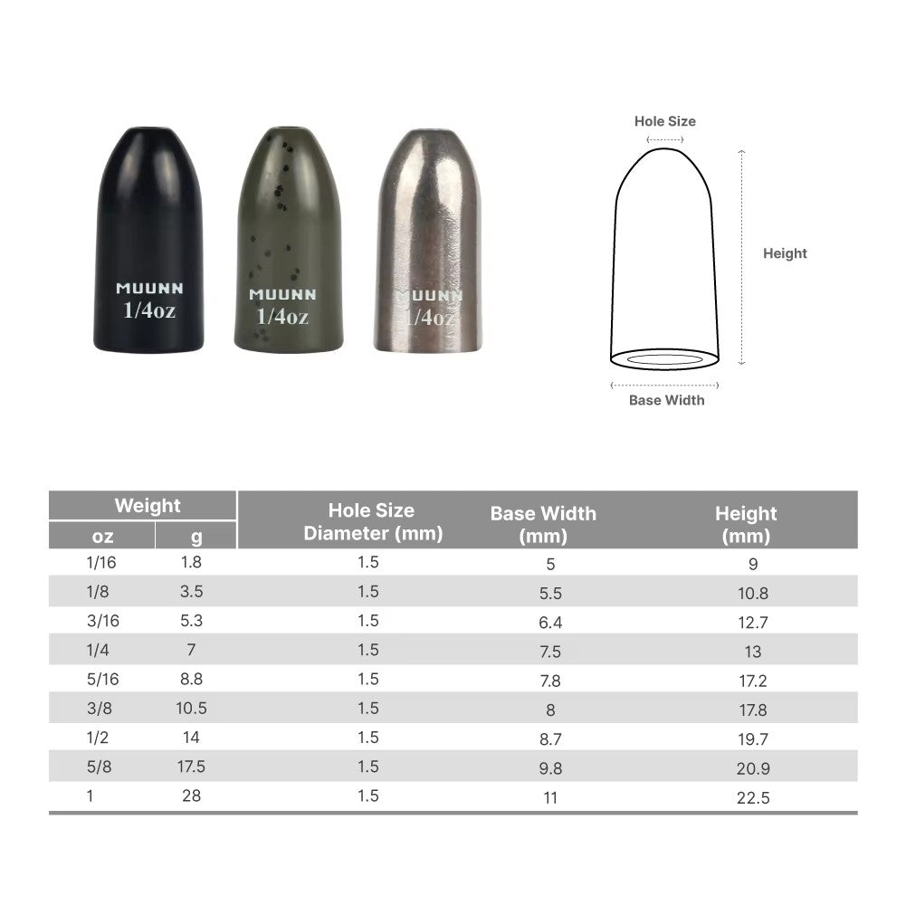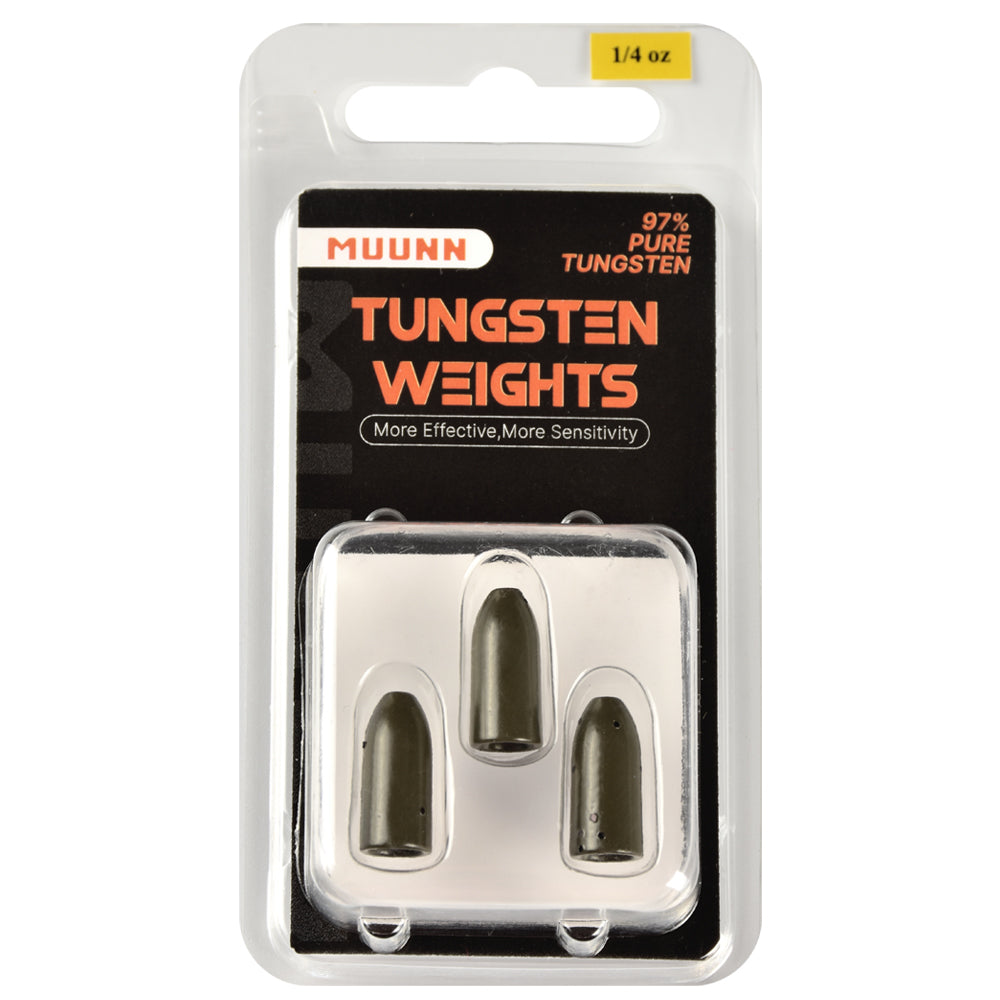 MUUNN Tungsten Bullet Sinker Worm Weight 1/16oz-1oz Packaged Bass Perch Salmon Fishing Texas/Carolina Rig Lure Accessories